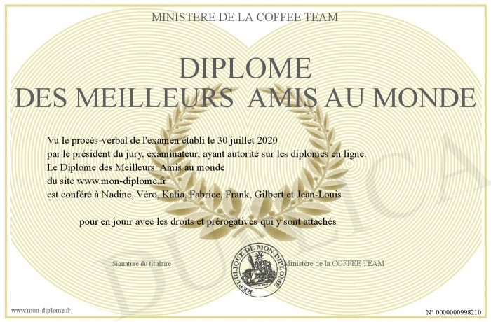 Envoyez par email votre Diplôme des Meilleurs Amis au monde personalisé