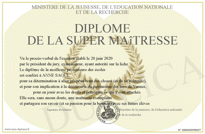 Envoyez par email votre Diplôme de la super maîtresse personalisé