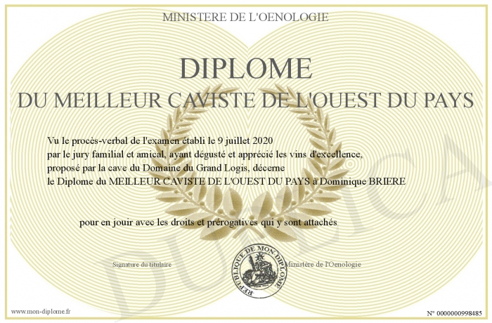 Envoyez par email votre Diplôme du MEILLEUR CAVISTE DE L'OUEST DU PAYS personalisé