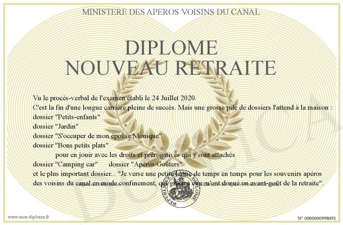 Envoyez par email votre Diplôme nouveau retraite personalisé